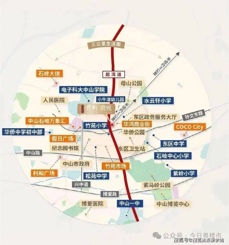 项目择址中山东区价值高地,起湾道中轴—— 这里是中山的行政、经济、文化核芯,汇聚市政府、金融总部、高端商圈、优质学府,更串联起岐江新城的未来蓝图。