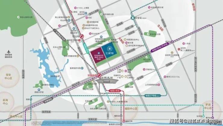 深圳北站中心作为七大总部基地之一,将打造世界级“城市会客厅”,成就湾区未来枢纽超级坐标。项目位于投资约2000亿的北站国际商务核心区域,周边高端写字楼集群,执领中轴城市财富高地项目位于龙华区民塘路与白松三路交汇处西南侧,距离深圳北站约350米,附近是去年入市的中海学仕里。西面为在建的深高北新校区,北面是华侨城北站壹号、金亨利都荟首府,东面则有鸿荣源北站商业中心、天俊公寓等商办产品。项目最大的卖点是位于名校深高北学区范围内(距离约200米),学区内的新盘在淡市中开盘均取得很好的成绩。总部枢纽CBD 高效商务纵横全国;2000亿打造深圳北商务枢纽总部,汇聚高端企业及上市公司总部,毗邻超级交通枢纽——深圳北站,珠三角2小时生活圈,全国说走就走,紧邻地铁4/5/6号线,全市繁华近在咫尺,都会文化四馆,九大主题公园,多元人文艺术美学,纳藏都市天际涵养【中央车站区 活力总部价格洼地】华南最大综合交通枢纽超级商务总部基地双重红利加持,占据核心区位,是香港和深圳臻稀价格洼地,龙华区域价值爆发式增长,中心区硬核资产当红不让四轨三站:周边4、5、6、27(建设中)四地铁线路;深圳北站、红山站、民宝站(规划中)三站汇聚,坐拥中轴TOD城市范本。三纵三横:福龙路、新区大道、龙华大道、留仙大道、南坪快速、北环大道“三纵三横”路网,直通南山、福田中心区。高铁枢纽:接驳广深、深港高铁及深惠城轨(建设中),速抵香港西九龙、广州,高效往来湾区生活圈。三条地铁市域通达,北站枢纽城间穿梭距离深圳北站约400米,地铁4/5/6号线直接在此接驳。通过4号线深圳北站向南20分钟内可抵达福田中心区,或直接换乘地铁5号线到南山、罗湖中心区。地处深圳中轴,自驾出行各个片区比较便捷,到深圳北乘坐高铁出行步行可达等多条地铁线路,可实现从项目出发,约30分钟左右可达福田中心区、罗湖金三角、前海等区域。公共交通方面,距离深圳北站交通枢纽步行10分钟,有多条地铁线(4号线龙华线、5号线环中线、6号线光明线)和通往全国包括香港西九高铁线路和深惠城际。19分钟可至香港、29分钟至广州,尽享半小时湾区生活圈。一天可达17个城市,