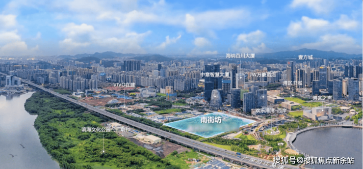 招商华润-观潮府(别名:招商华润南街坊项目)坐落宝安中心区最核心位置,距离海岸线仅300米,是宝中片区近年来最临近海岸线的住宅用地。东南向直面欢乐港湾摩天轮,与腾讯大铲湾新总部一水之隔,真正占据湾区发展黄金位置。
