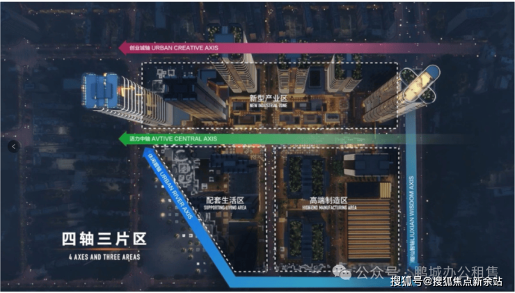 作为新一代“产城融合”项目的典范,雪花科创城致力于成为粤港澳大湾区的全天候活力都市,新兴产业的智慧创新高地。在整体规划中,秉承“四轴三片区”的规划理念,规划了新型产业区、高端制造区以及高端配套生活区,并配备了多样化的产品,如生产厂房、研发用房、精英宿舍、商业设施、文旅项目、文体中心、庆典场所等,通过产业集聚人流,满足企业办公、研发、生产、居住、消费等多元化需求,真正实现园区内生态闭环,达成“生产、生活、生态”三位一体的融合。