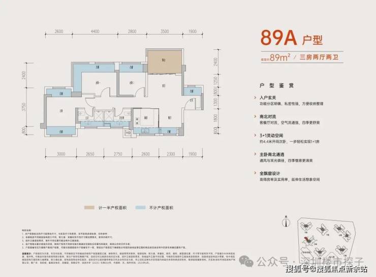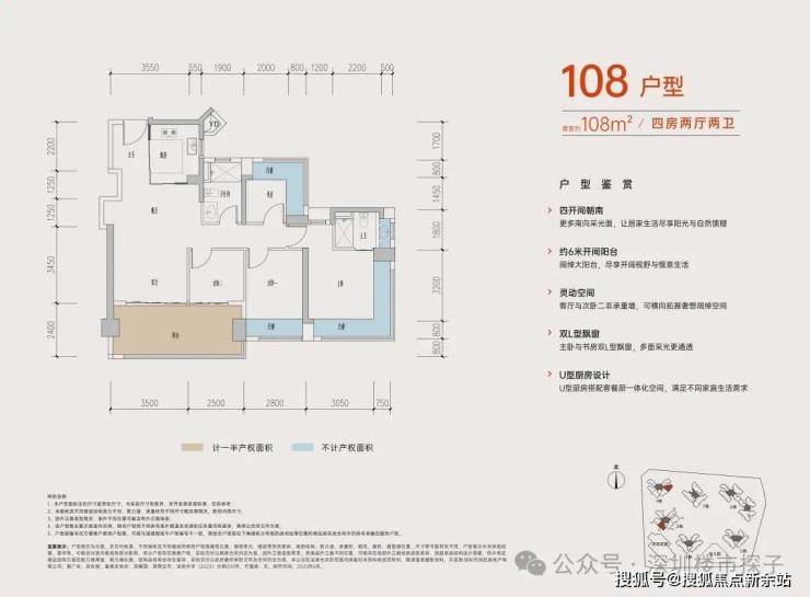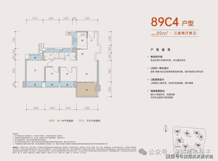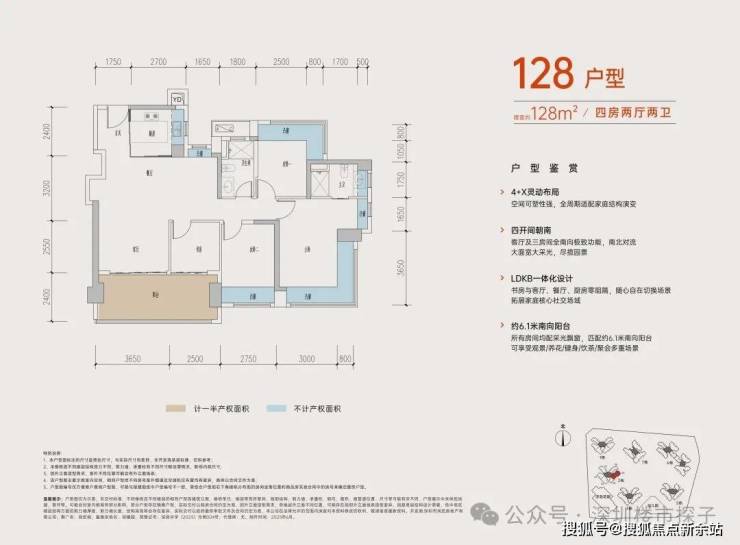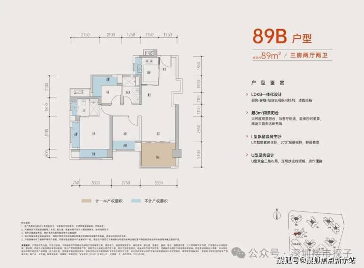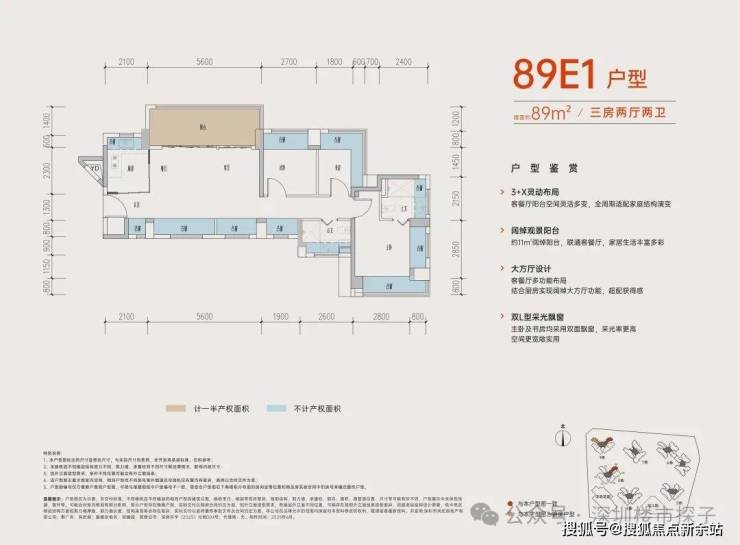 从具体的户型设计来看,居所几乎被飘窗+阳台环绕,据悉赠送率最高可达27%。
