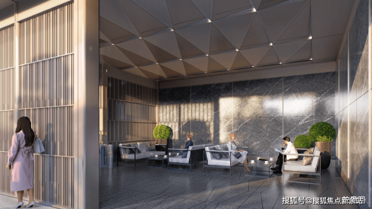 🔘先锋立面:大面采用灰色铝板和三层超白low-e 玻璃类幕墙,提高建筑的安全性、腐蚀性和耐久性,确保建筑形体的美观,公建化先锋立面,品质历久弥新。