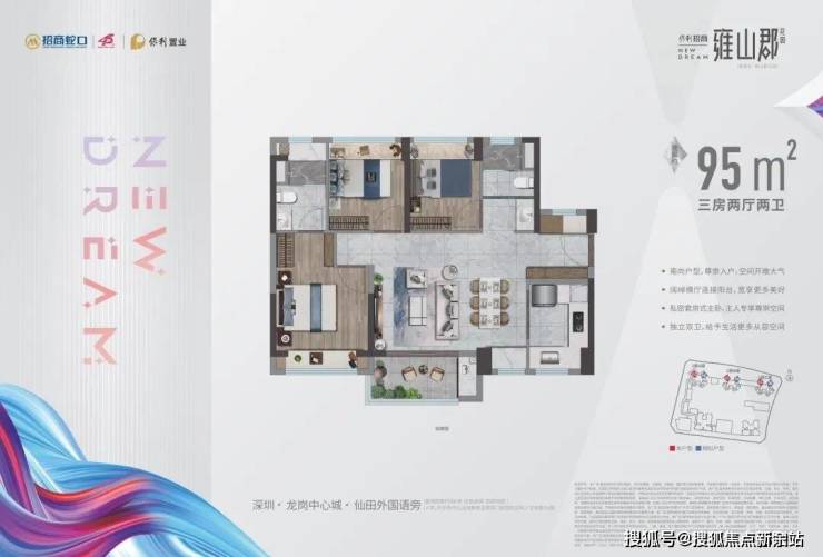建面约69-85-95㎡南向(涵盖东南/西南朝向)2-3房