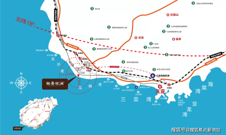 项目至三亚市有三条主干线可达,海南环岛高速,海榆西线(G225)国道和海南环岛高铁。