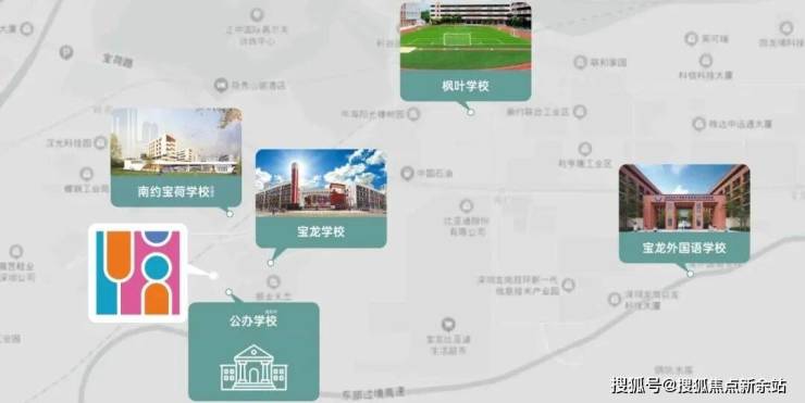 项目自带1所12班制幼儿园,家门口规划有1所九年一贯制公办学校(已经在动工),小学、初中学区,都是划分为宝龙学校(300米)、宝荷学校(500米)、宝龙外国语学校。