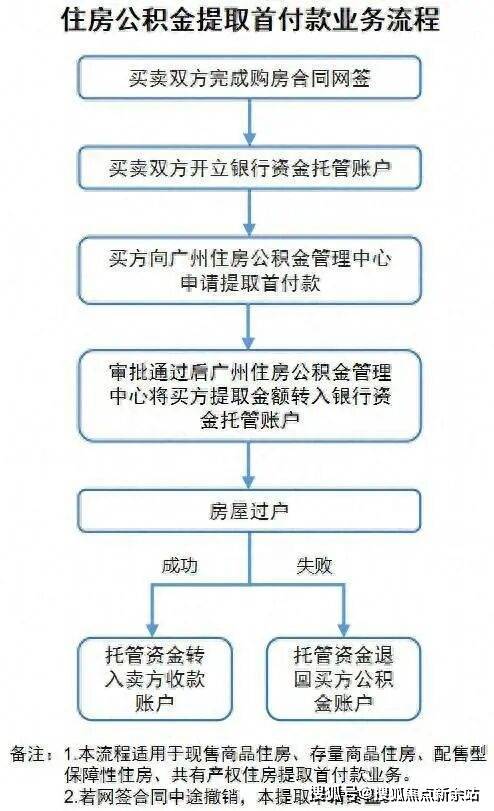 (2)买卖双方完成购房合同网签及开立银行资金托管账户后,可向广州住房公积金管理中心申请办理提取住房公积金支付购房首付款。