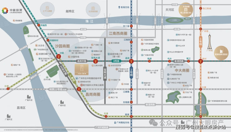 海珠西成熟配套,与昌岗,江南西、沙园、中大商圈相互接壤,兼具繁华与烟火气,老广最喜欢的聚集地。