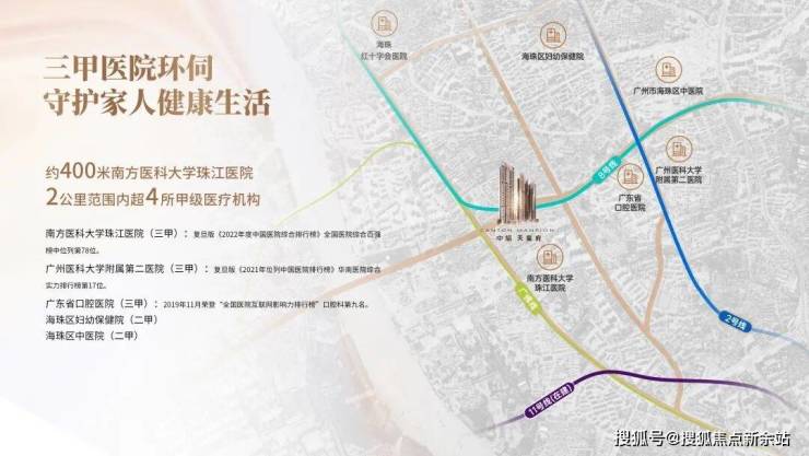 500米步行南方医科大学珠江医院,广州医科大学附属第二医院、广州市红十字会医院、广东省口腔医院等多家三甲医院保驾护航。