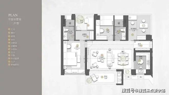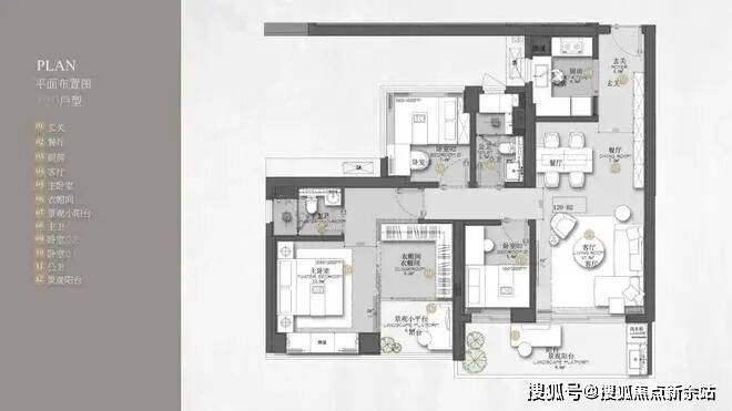 135㎡三房两卫,横厅格局,南北双阳台设计,9.8㎡南向主阳台,三个房间面积分别达到9/11/15㎡,主卧带衣帽间和卫生间,舒适度非常好。
