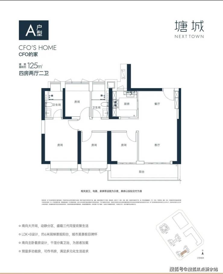 “南向全明四房LDK+B”设计,宽景阳台,拥揽四季