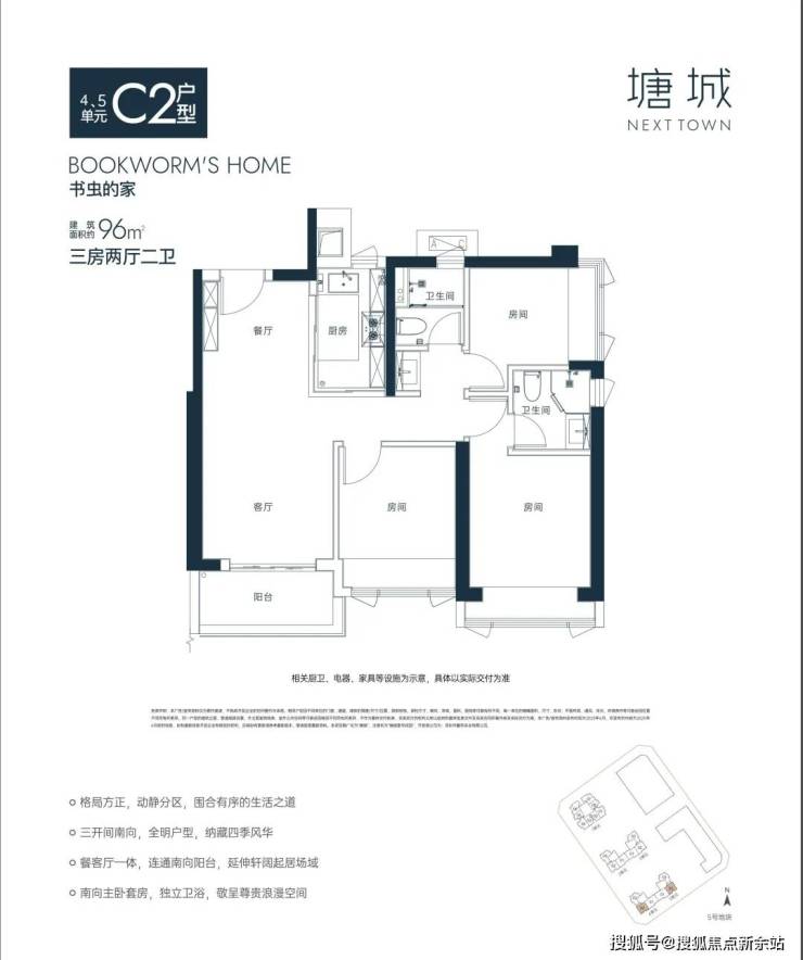 【C2户型96㎡三房两厅两卫】