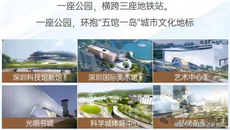 人文与医疗配套同步完善,人文方面,科学公园范围内规划建设深圳国际美术馆(在建)、深圳科技馆新馆(在建)、科学城体育中心等市级文体配套,3公里内还有光明文化艺术中心,涵盖剧院、美术馆、图书馆等业态,丰富居民文化休闲生活,涵养高阶人文气质。
