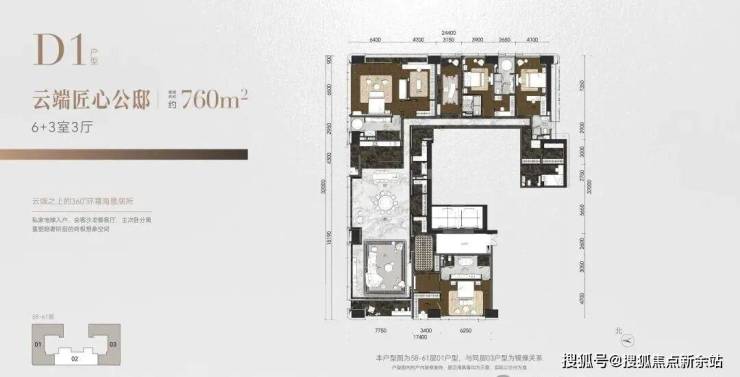 ◎建面约543~570㎡ 4+3室2厅,云端匠心公邸