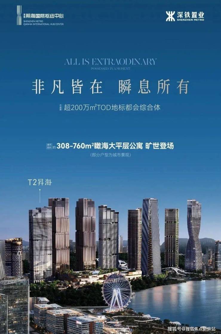 深铁前海国际枢纽中心首发T2 昇海,建面约308-760㎡瞰海大平层公寓,外立面取意风生水起之形,昂扬非凡人生格调,以全套房空间设计、IMAX环幕海景(部分户型为城市景观)、奢感公区配套,映照塔尖人物的生活尊崇。