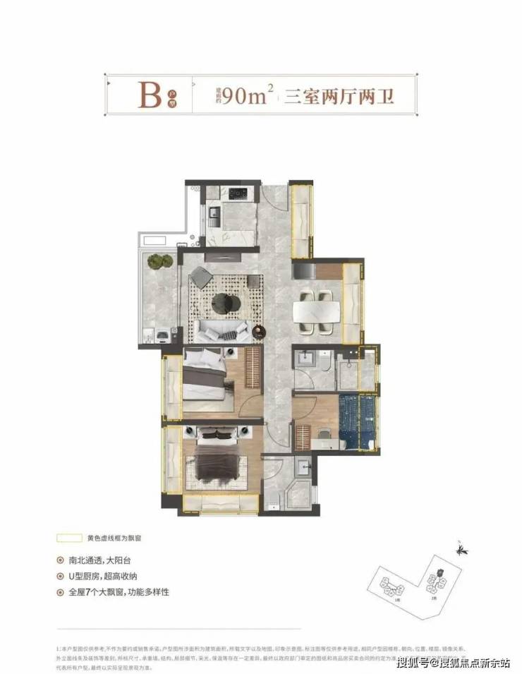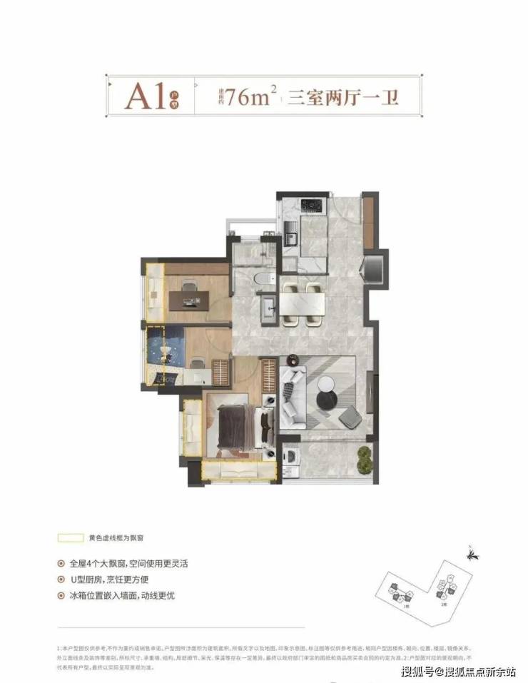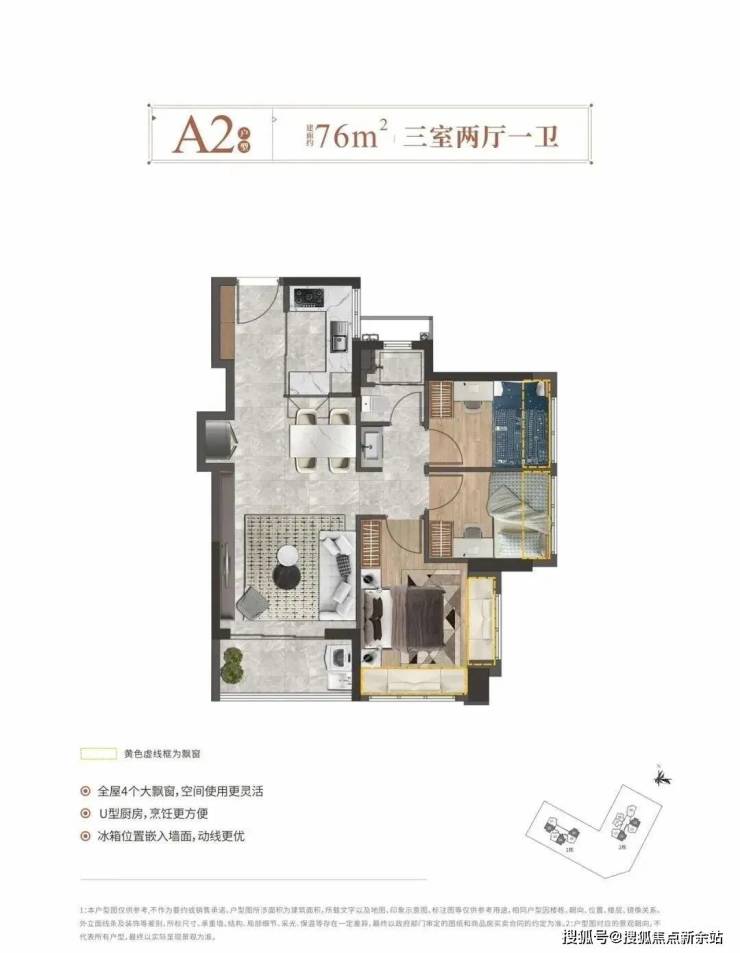 【产品面积】:76㎡3房2厅1卫、90㎡3房2厅2卫