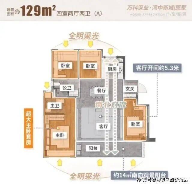 小高层洋房主要在售建面约129/139㎡都是改善型四房设计。