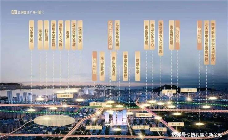 中国科创看深圳,深圳科创看南山,深圳市6+1总部基地,南山区独占4+1,项目毗邻深圳湾高新区总部基地,前海合作区,后海、深圳湾、留仙洞总部基地环绕,战略高地围合,智领深圳价值中芯