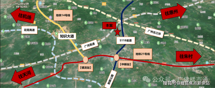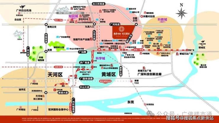 交通:1站黄埔(镇龙站),3站天河(快线天河智慧城);高速就在家门口,40分钟直达天河,小区设置地铁21号线中新站、天河宏发广场(3号线石牌桥站)接驳巴士,广河高速、广汕公路,新白广城轨(镇龙站)、多路公交接驳线