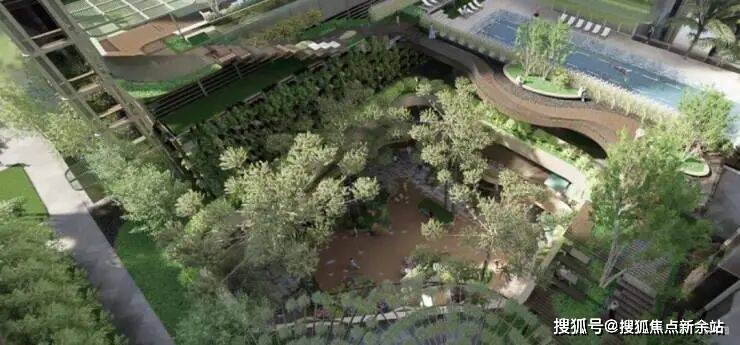 以垂直绿化和创意景观设计,为高层建筑下的空间带来一片生机勃勃的绿洲。