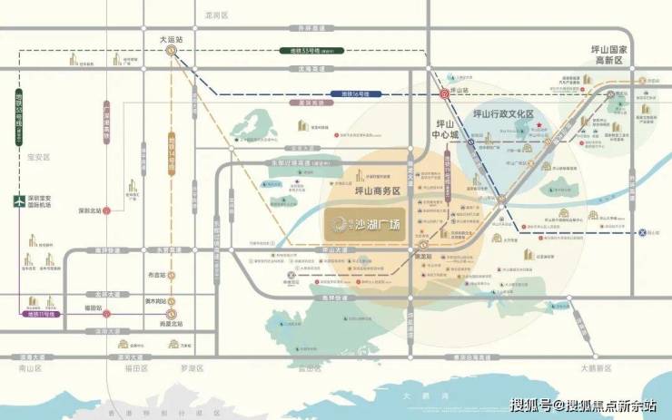 坪山封面,全业态综合体大城:项目建面约62万㎡,汇聚精品智慧住宅、无界旗舰商业、商务公寓、办公等多元业态于一体,打造坪山地标超体,引领繁华新中芯。