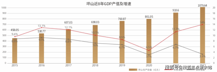 坪山跃级,增速全市第一:近年来坪山区经济活力与产业发展迅速领跑深圳,2022年GDP增速高达14%,突破千亿,排名全市第一。