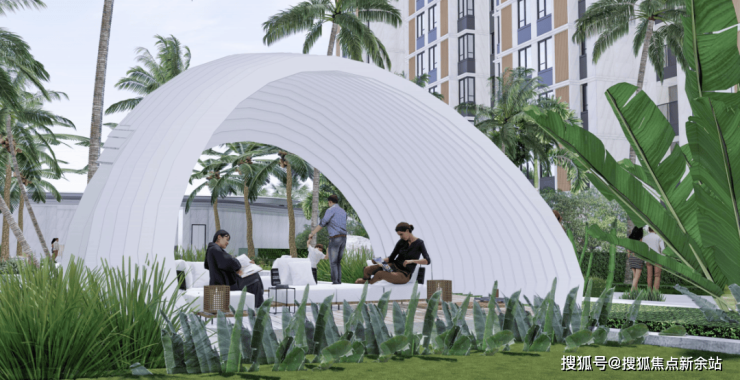 海滩凉亭、贝壳廊架等社区内交互空间,不仅从建筑外形上对标新加坡风格,更从场景重建、景观互动方面贯穿“自然是链接人与日常的底色” 的新加坡精神。