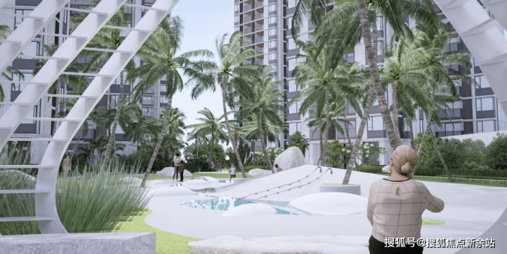 臻选圣淘沙白色砾石模拟新加坡海滩,将儿童游乐区融入其中。通过景观与功能的链接,定格白色沙滩上的亲子时光。