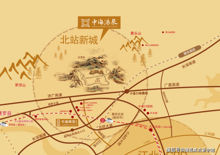 1、北站新城:汤泉项目位于惠城区高铁北站新城,距离惠州市政府、江北CBD约17公里,开车20分钟,各项生活及商业配套十分便利。
