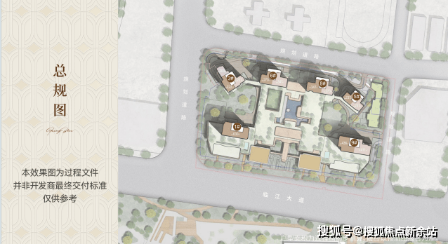 项目采用北高南低半月型布局,前排2栋35-37层,后排4栋49-50层,通过楼栋扭转实现100%望江视野。地势整体抬升,确保最佳观景效果。
