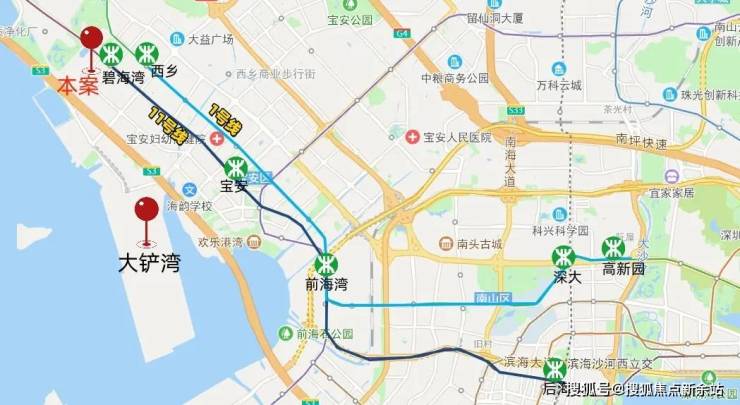 轨:11号线「碧海湾站」出站即达,距1号线「西乡站」直线距离约800米,1站宝中、2站前海湾、4站后海、6站车公庙,高效直达各中心区;