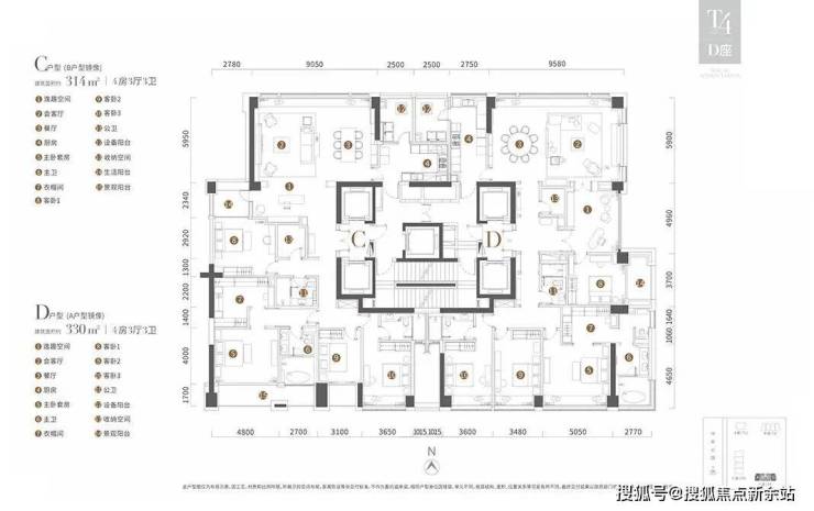 T7王座总裁公寓 【T7-01户型鉴赏】约393㎡四房三厅六卫