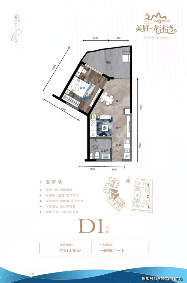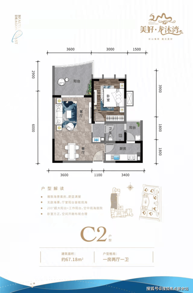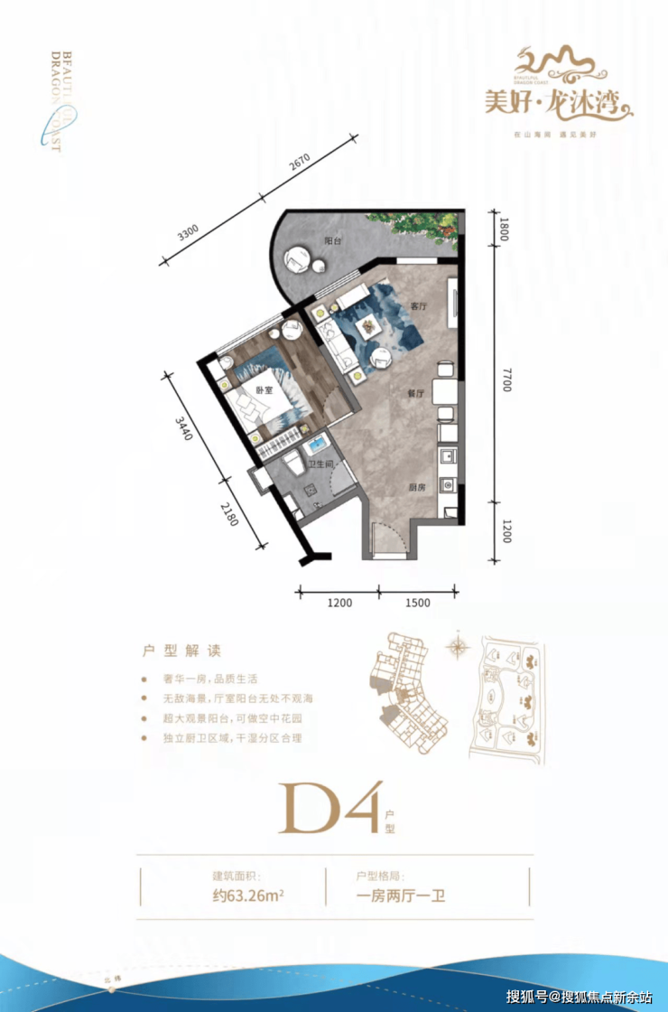 ① 开间户型独立明卫,各功能区域俱全,瞰景阳台,超大景观面宽