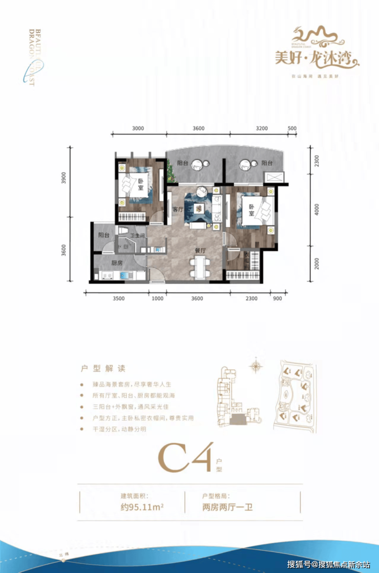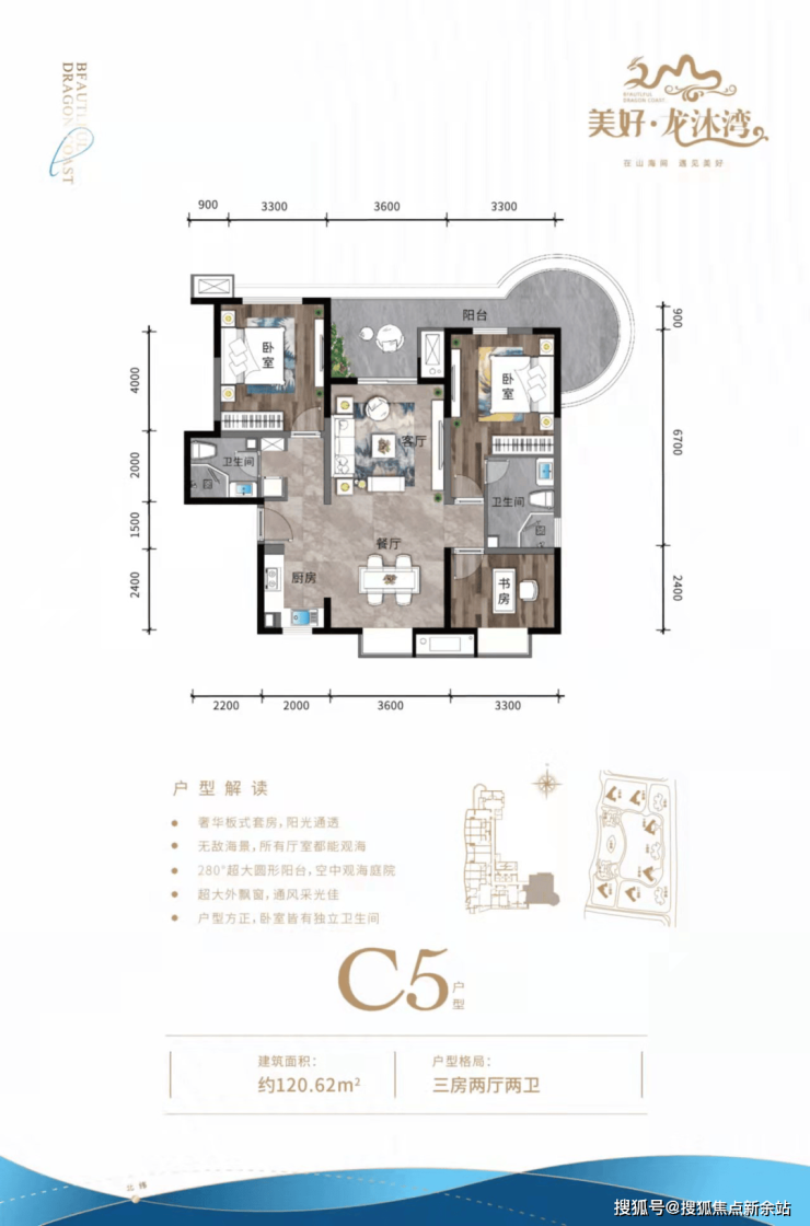 ④ 三房户型三面采光,空间方正合理,双独立明卫,270°环型瞰海阳台