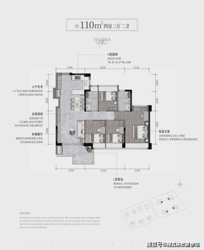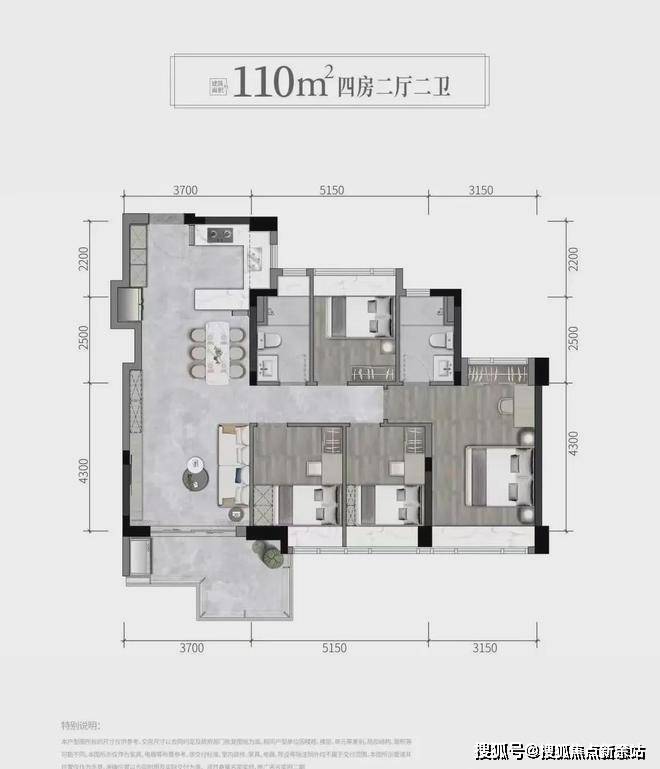 110㎡4房2卫,南北通,舒适4房