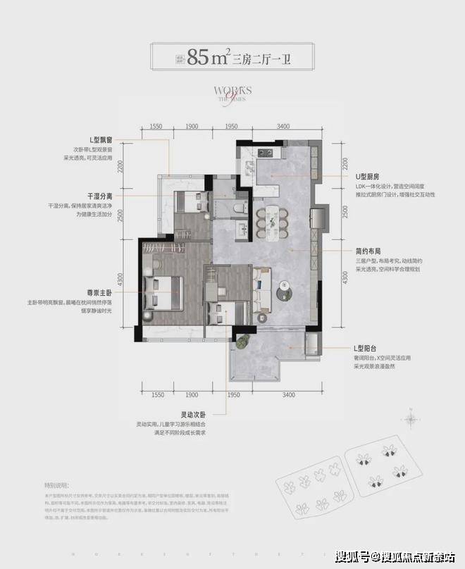 93㎡通透户型有东北/西南通透和西北/东南通透两种,该户型的优点是独门独户、客厅通透、动线清晰、餐客厅独立性好,但动静分区做的就比较一般,客厅阳台不是优势朝向。