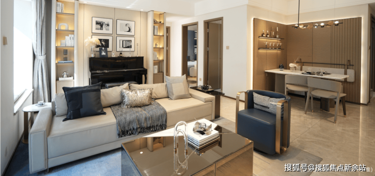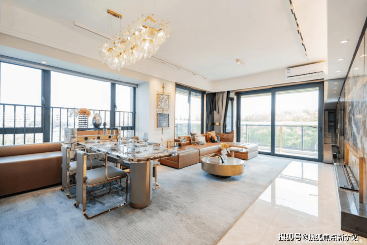 约141㎡奢定空间,餐客双厅链接观景阳台,配设巨幕飘窗,引江、光、风三重奢景入室。
