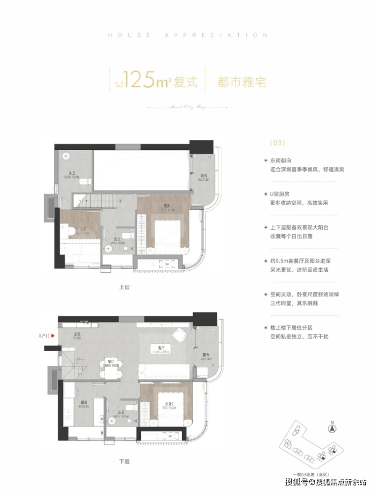 125-271-440㎡复式,125平是市面上少有的小面积复式产品。