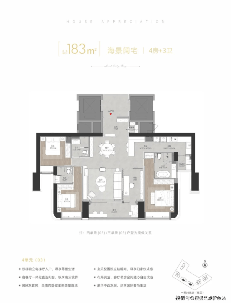 183㎡4房2厅3卫,253-270㎡4房2厅4卫+工人房。