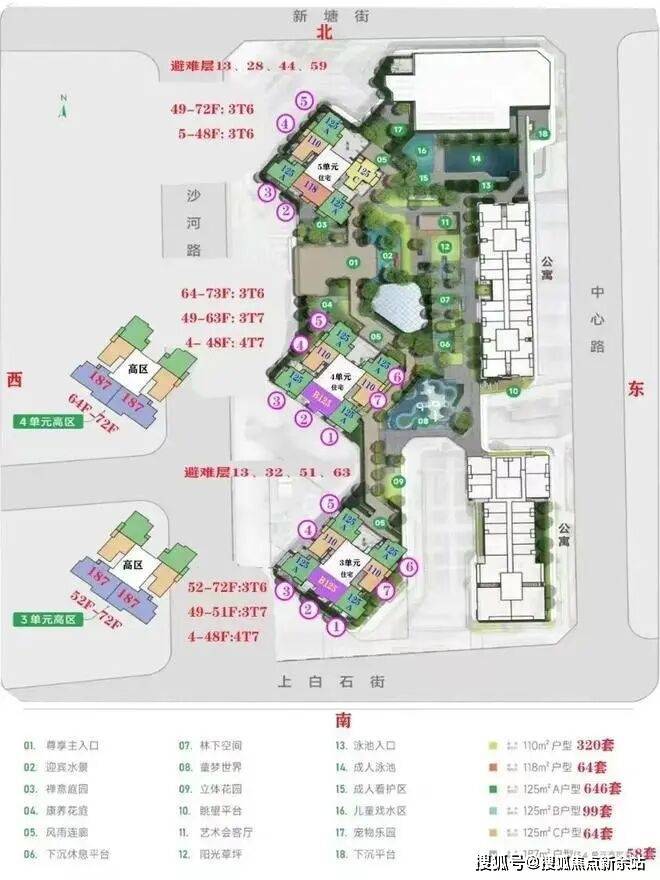 梯户比:1-3/1-4栋低区4T7,高区3T6;1-5栋高低都是3T6(PS:48F以上为高区)
