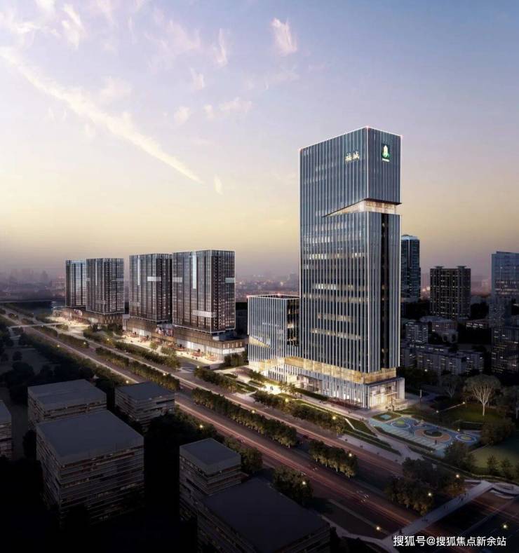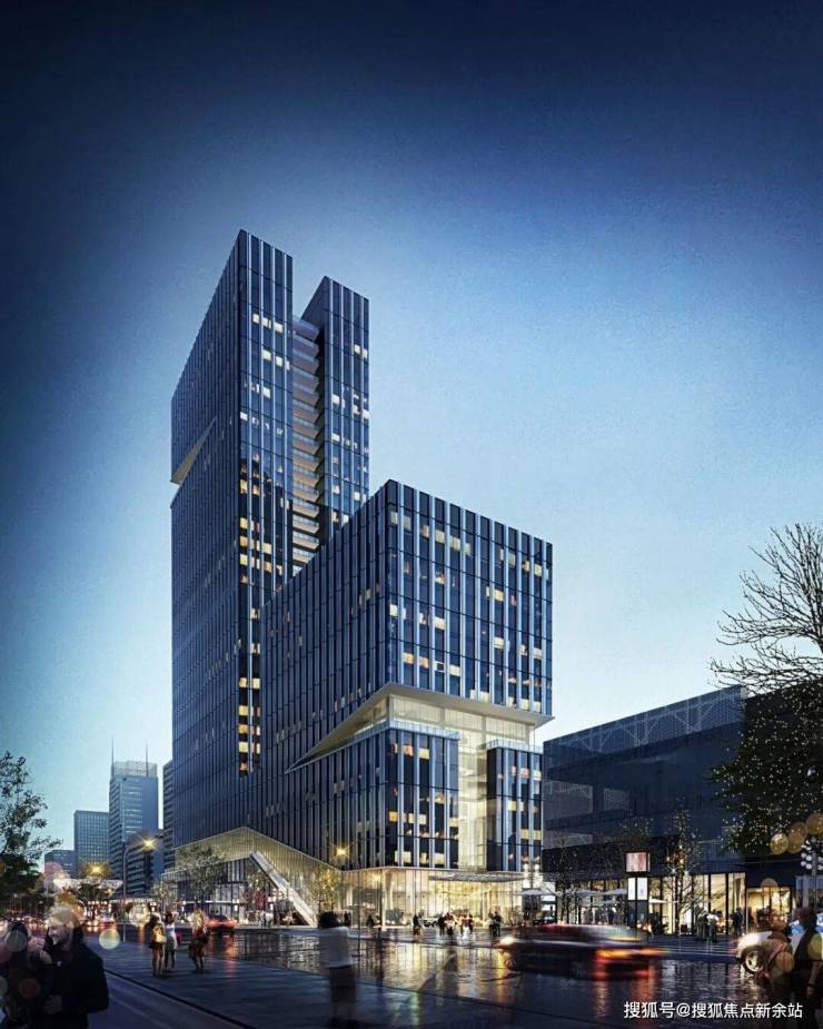 建筑外立面几何感十足,竖向线条拉升视觉高度,呈现简洁大气的现代美学;内部则以温润雅致的亚光米色、香槟金为主调,在冷硬的商务空间中注入温度与人文情怀。
