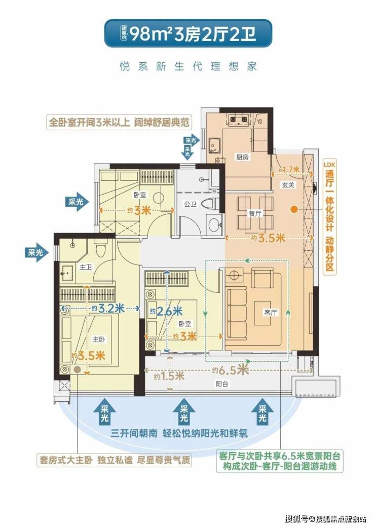 🏠98㎡ 三房二厅两卫 总价373-450万