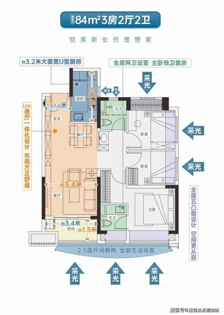 🏠84㎡ 三房两厅二卫 总价333-380万