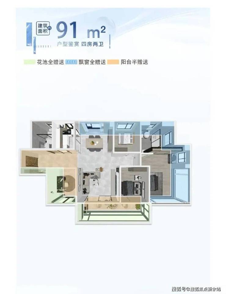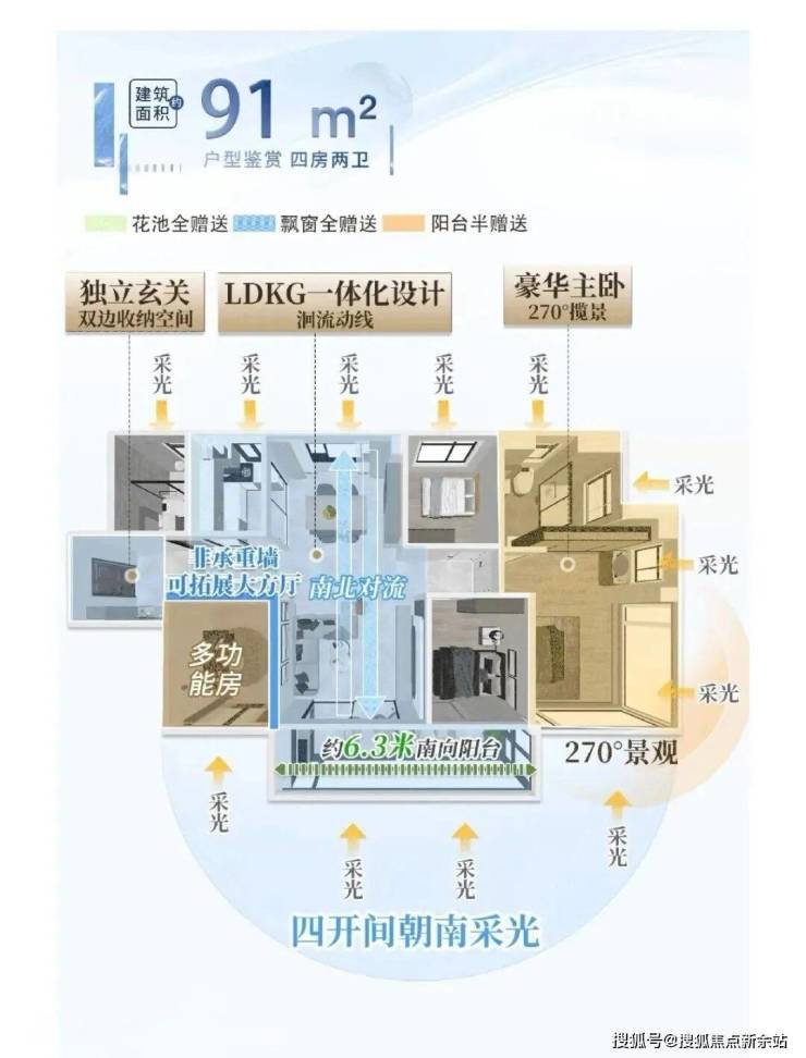 91平四房,尺度堪比120平以上的大户型。约6.3米南向阳台,解锁生活N种想象