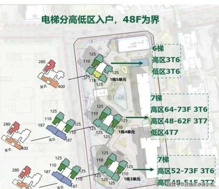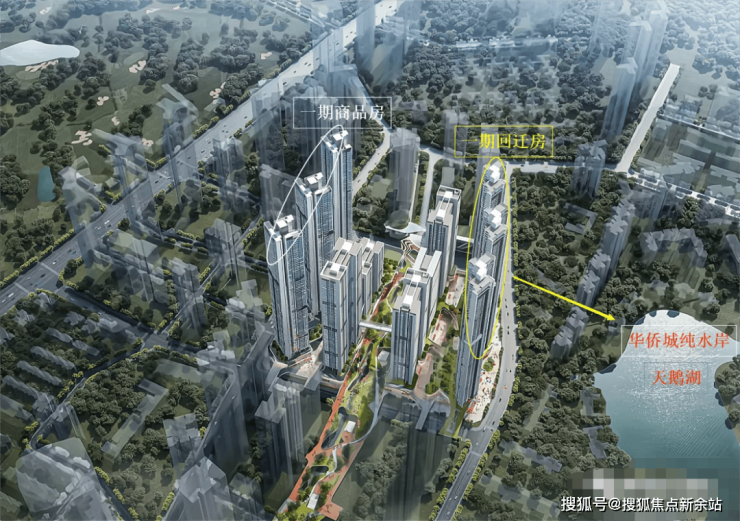 共分四期开发,回迁住宅、公寓分布在一二三期,由31栋49-65层住宅,21栋公寓组成。四期为商业地块,由3栋66-79层超高层写字楼,1栋59层办公楼组成。