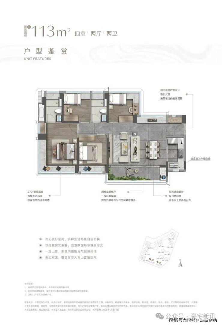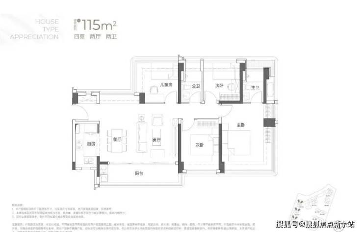 竖庭格局,西南向,基本居住功能与建面约108-110㎡4房2卫一致,但格局不一样,从目前公布的户型图上看,主要是主卧空间有了更大的提升,比如可以放更大一点的衣柜。