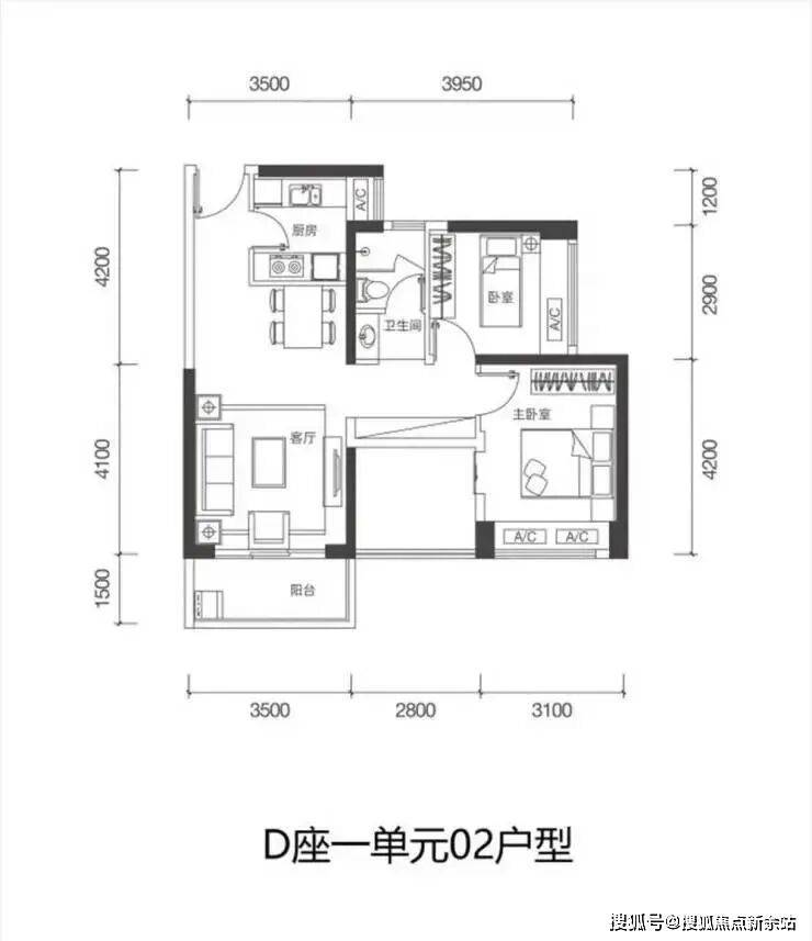 【梯户比】D座2梯4户,C座3梯6户