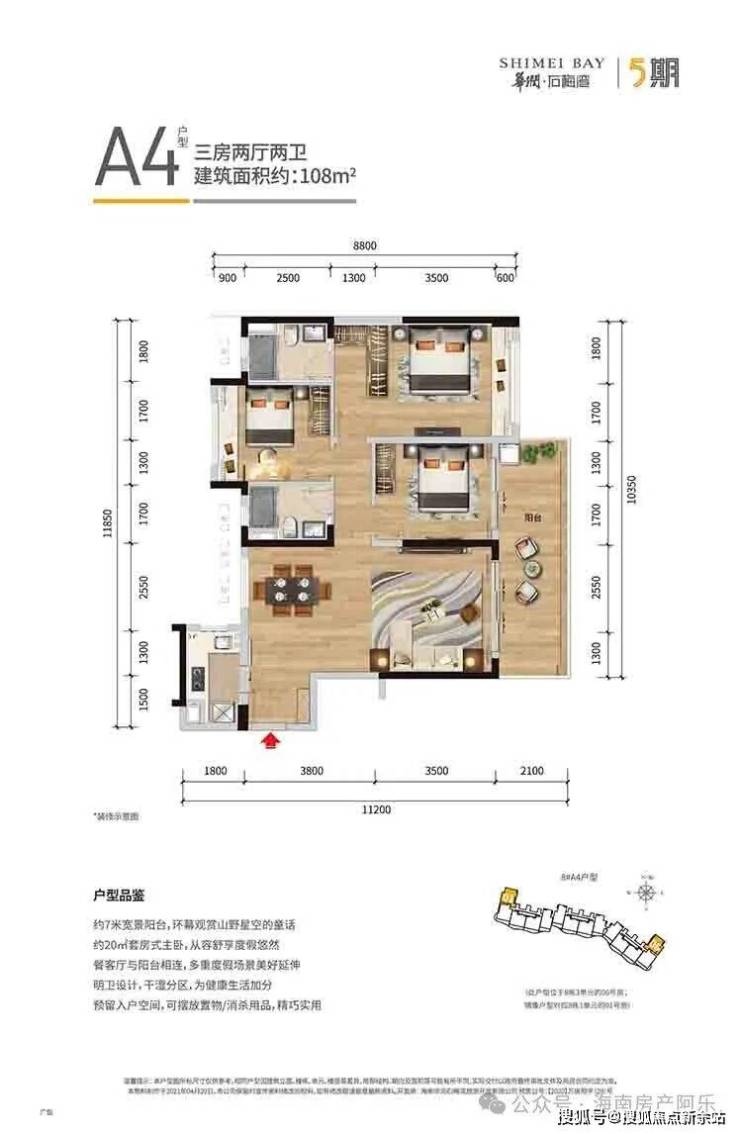 主推户型:105㎡/108㎡/115㎡三房两厅两卫 全家庭度假房型