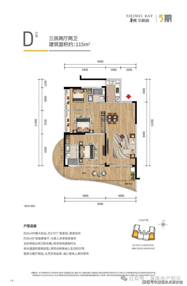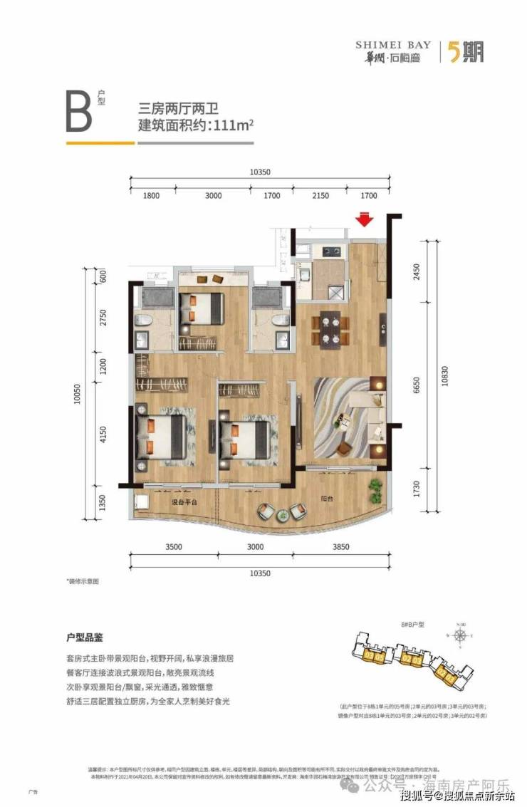 主推户型:104㎡/105㎡/108㎡/111㎡/118㎡三房两厅 全家庭度假房型