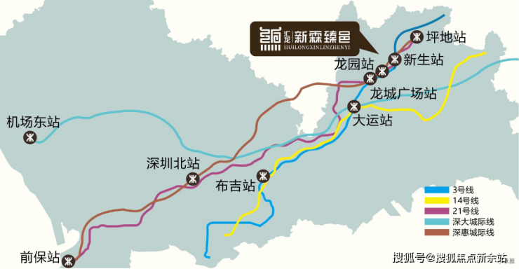 【交通】2地铁+2大道+2高速,毗邻盐龙大道、龙岗大道等交通动脉,交通便捷,城际之间轻松切换。地铁3号线东延线新生站(已运营),与地铁21号线(规划中)交汇,2站换乘深惠城际(前海至龙岗段已动工),未来7站深圳北、11站速达前海。