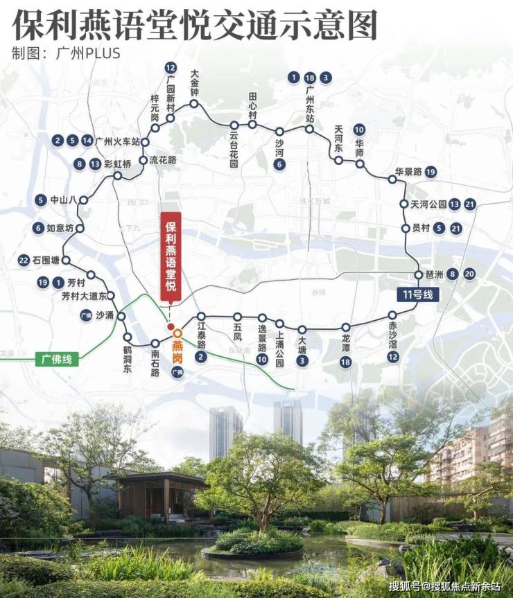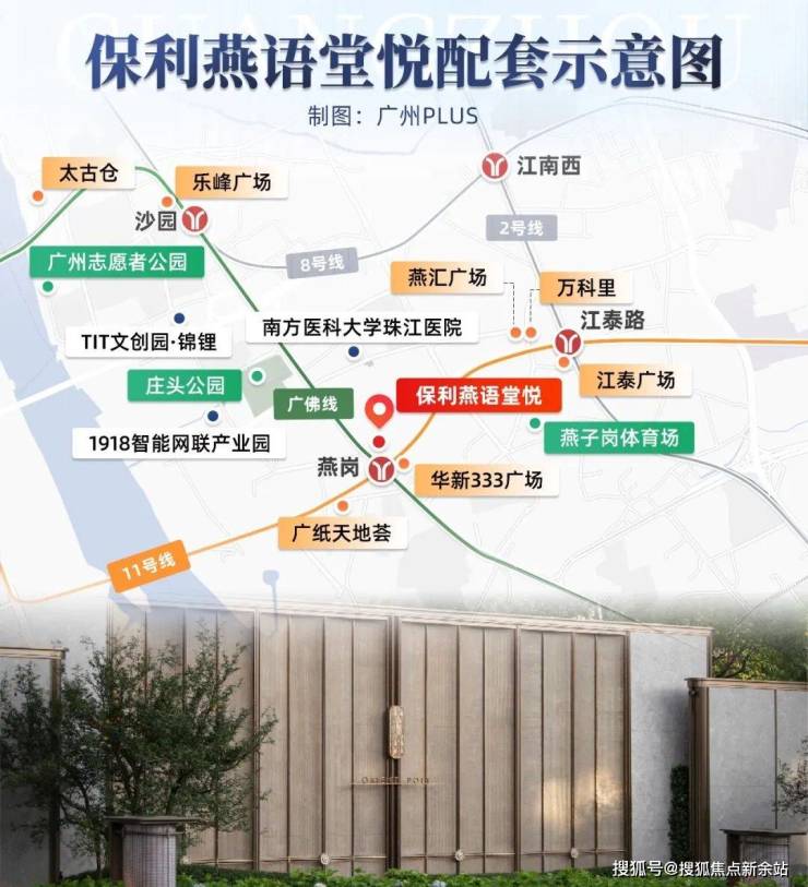 距离项目仅约50米的燕岗站,随着去年广州11号线的开通,提级为广佛线+11号线的双地铁站,实现与天河、琶洲、金融城等CBD的一线直达。